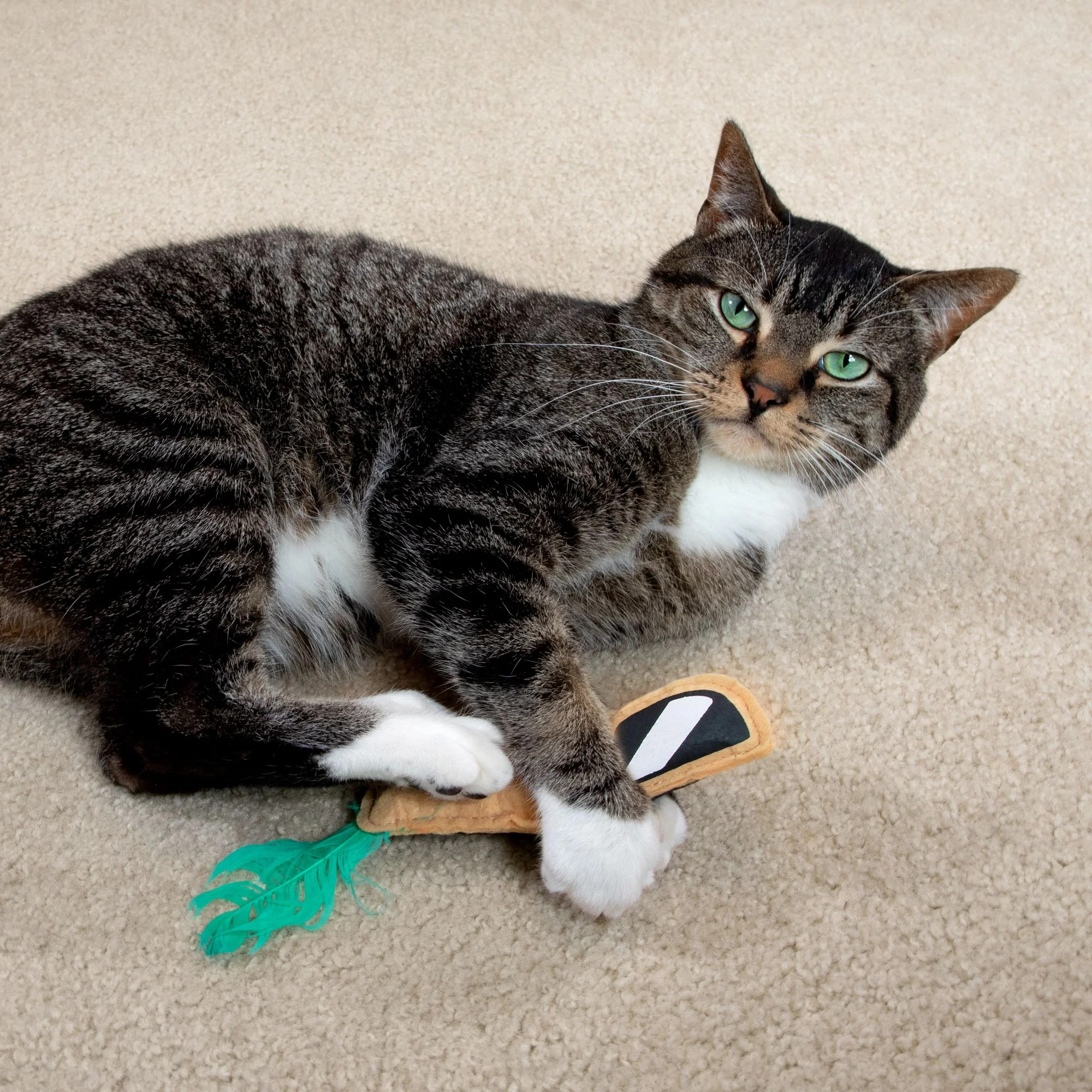 - INTERACTIVE FUN: Feather traps, cardboard flip flops, and fling rings are perfect for active play with your pet and are designed to engage your cat’s natural hunting instincts. Toss one in the middle of the room and watch your cat stalk, swat, and chase