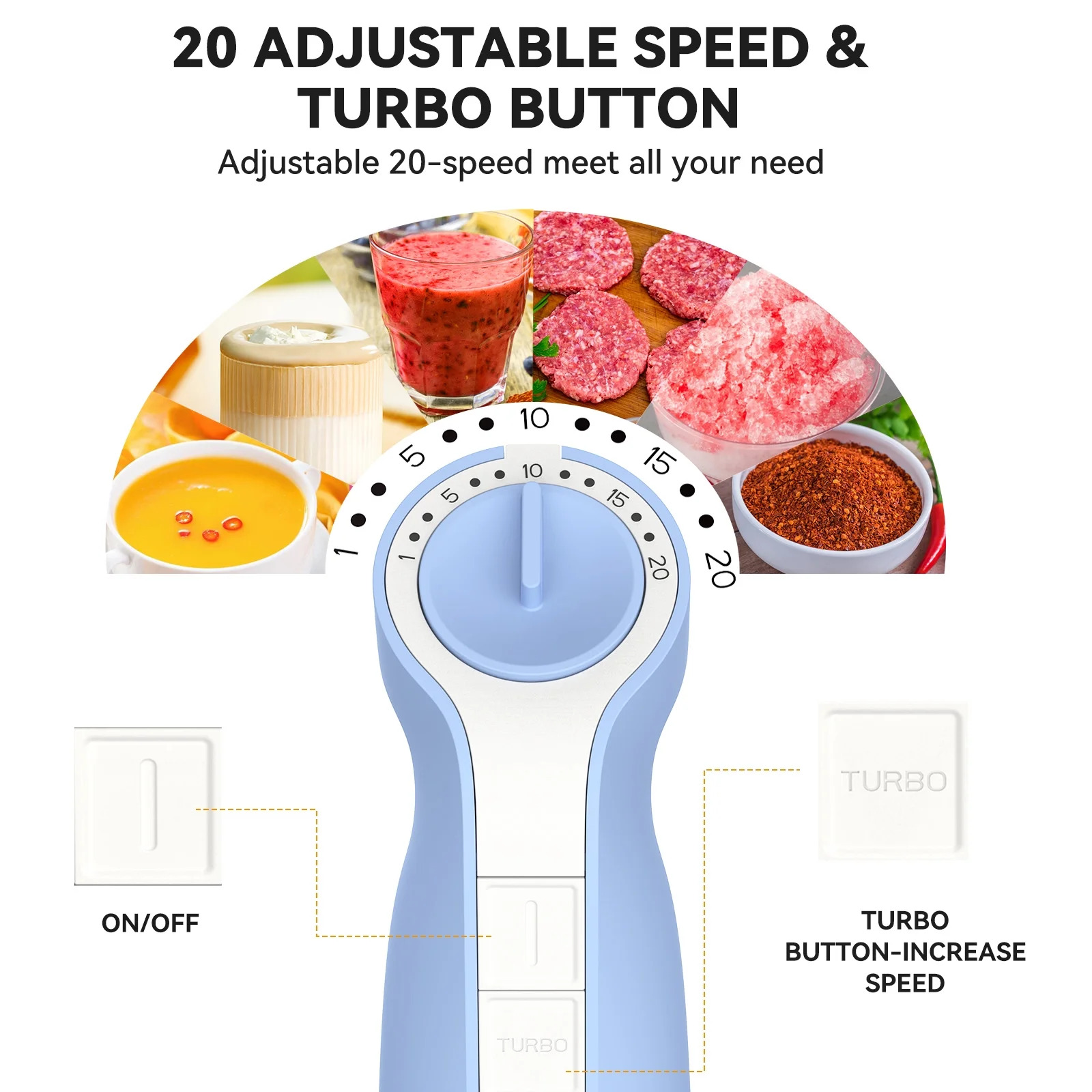 - 20-Speed Control: Features 20 different speeds for precise mixing and a TURBO button for maximum speed on tough tasks.
