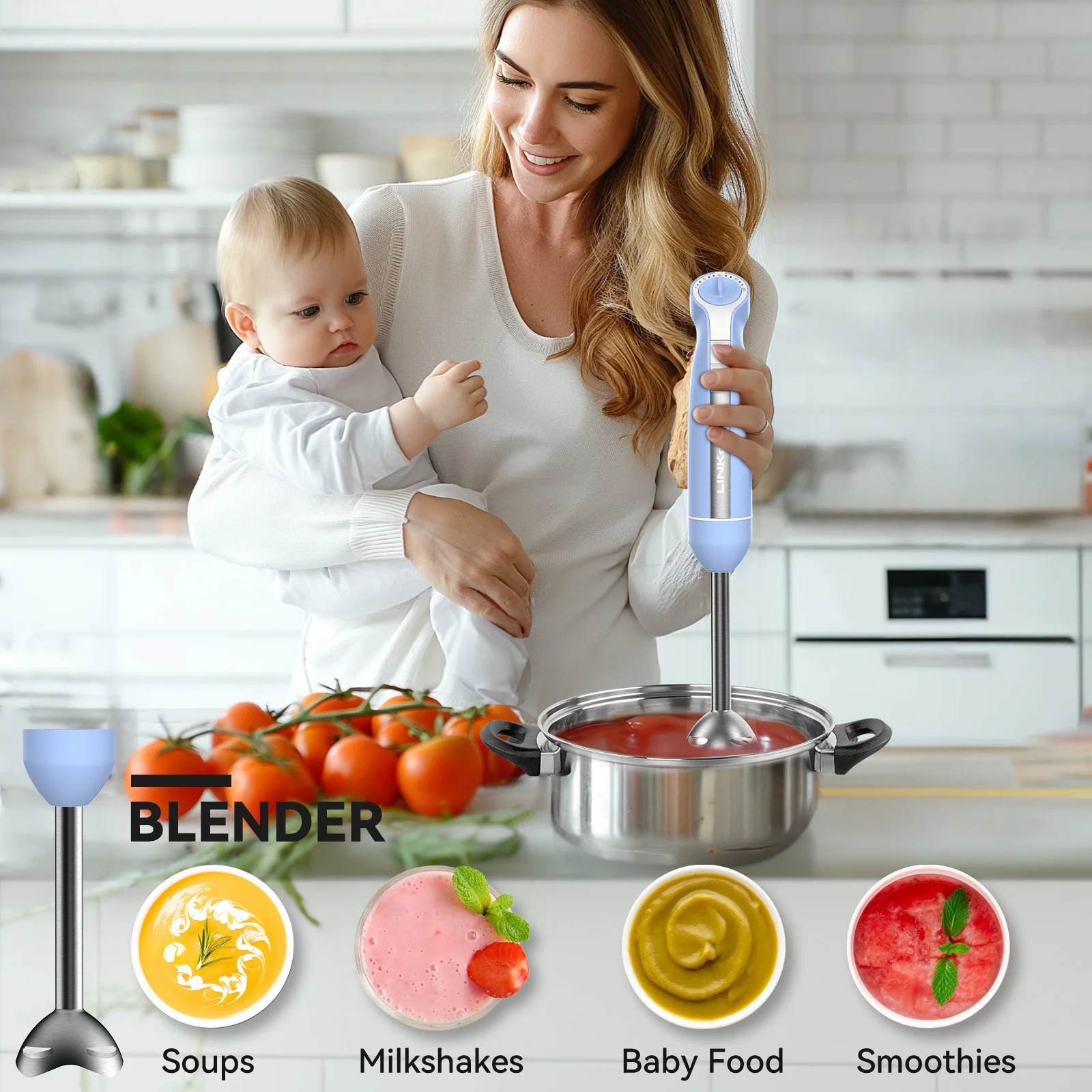 - Powerful Motor: Immersion Blender equipped with a 1000W all-copper motor for maximum power and efficient blending.